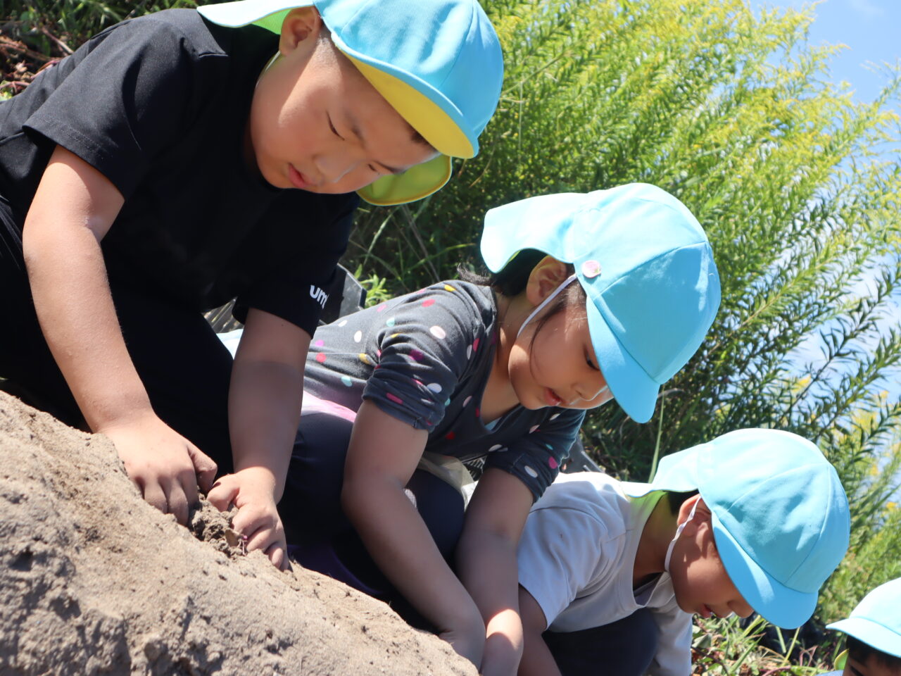 2025年10月10日 芋ほり遠足に行きました♪ 年長児ばら組(5歳児)がバスに乗っていもほりに出かけました。たくさんお芋を掘った後、北条オートキャンプ場でお弁当を食べたり、散策を楽しんだりしました☆ 詳しい様子は 保護者専用ページ からご確認ください。