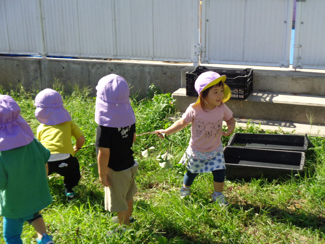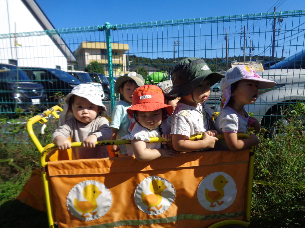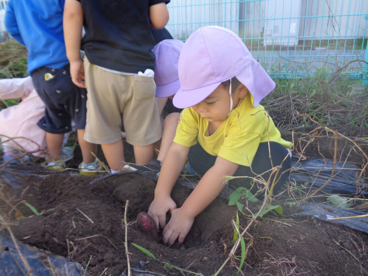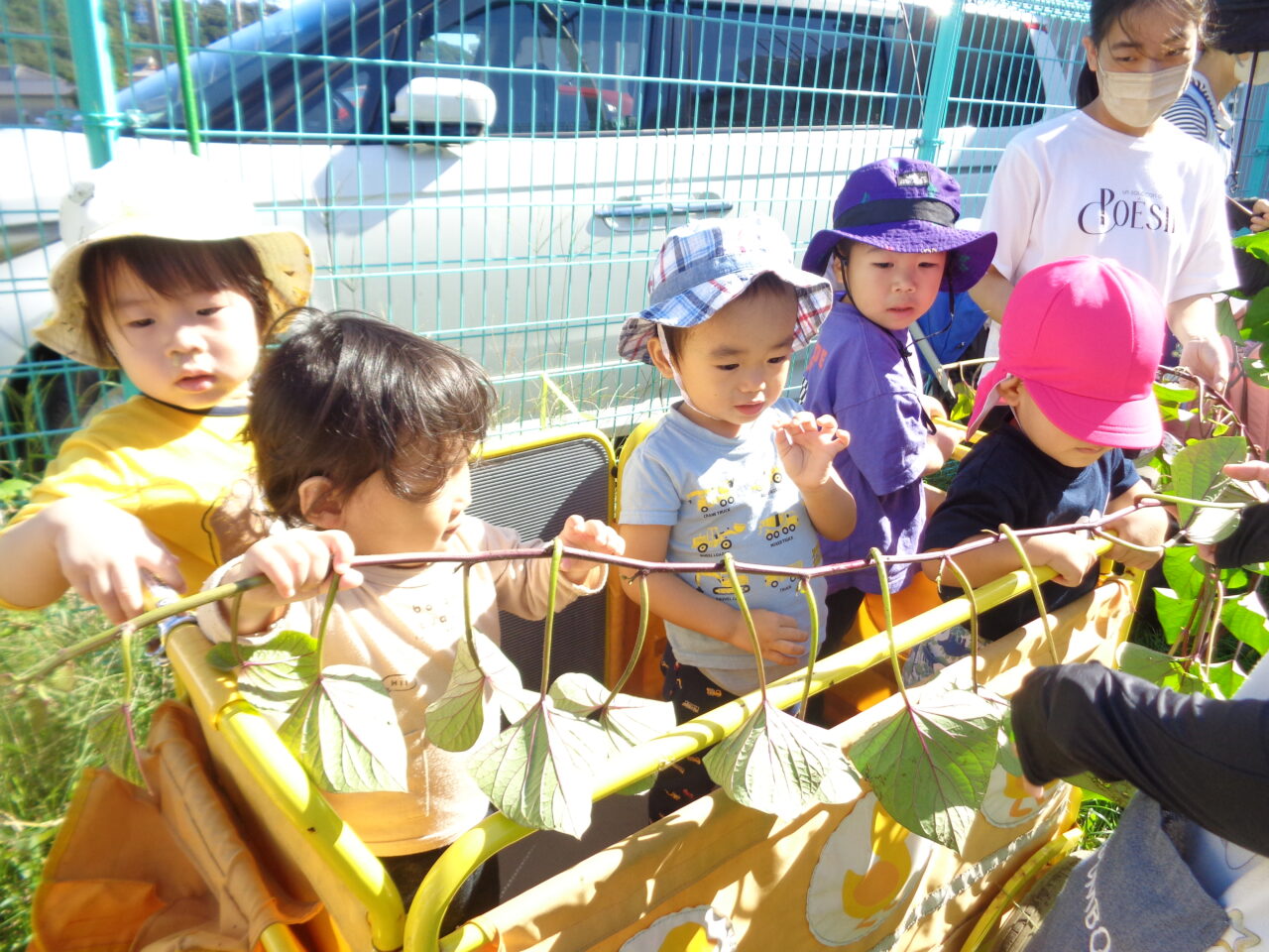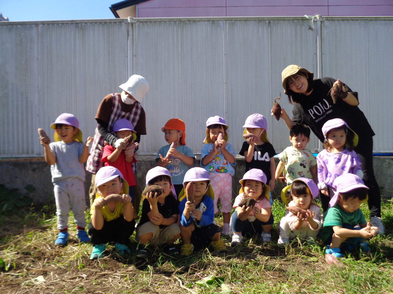 10月10日(金)、0.1.2歳児が 園の畑で育てた さつま芋を掘りました! 「うんとこしょ♡どっこいしょ」とみんなでつるを引っ張ったり、手で土を掘ったりして、出てきたさつま芋に大喜びする子どもたちでした!!楽しかったね♪