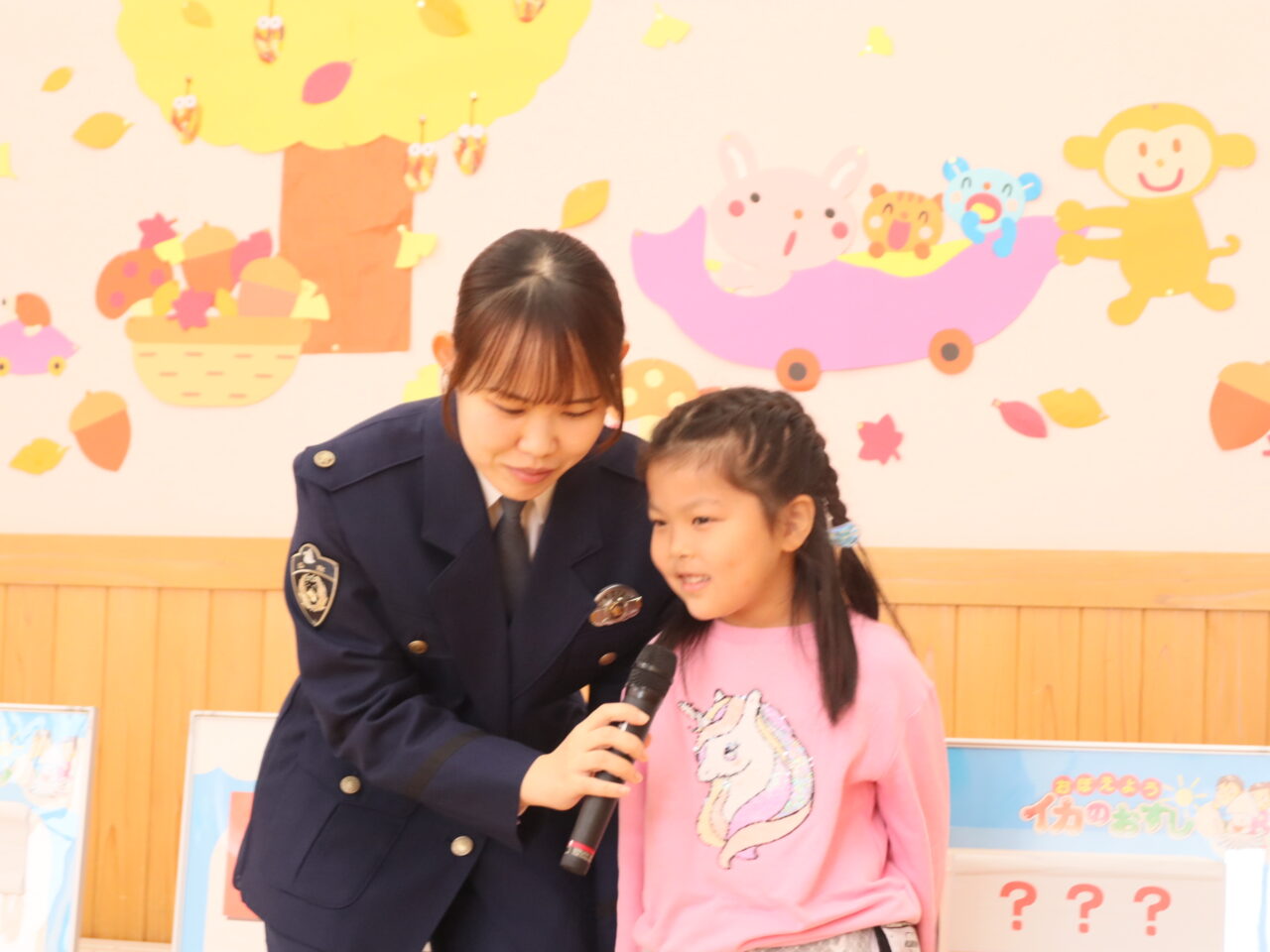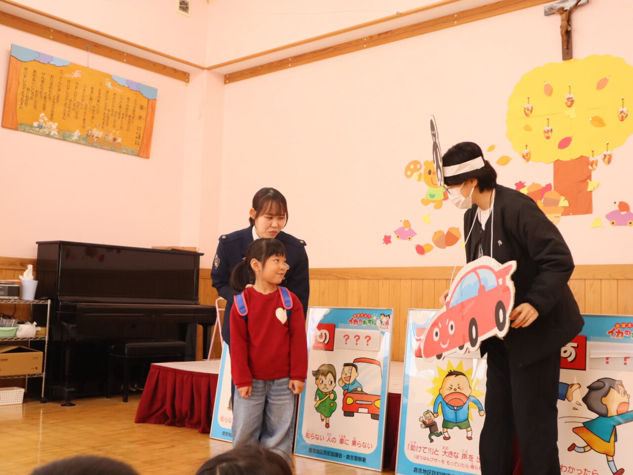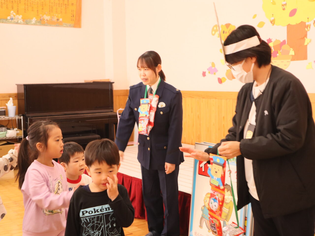 11月5日(水)警察の方に来園して頂き、不審者対策など大切な“命”を守るために、気を付けなければならないことを「い・か・の・お・す・し」になぞらえて分かりやすく教えて頂きました。