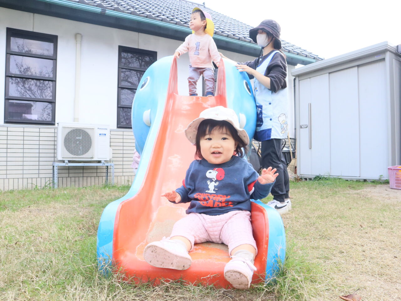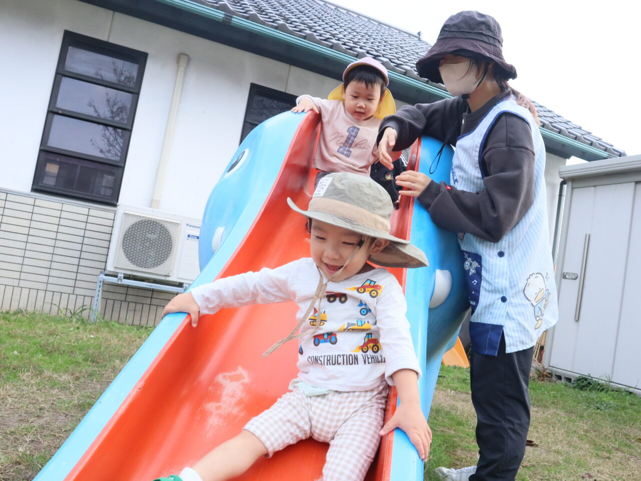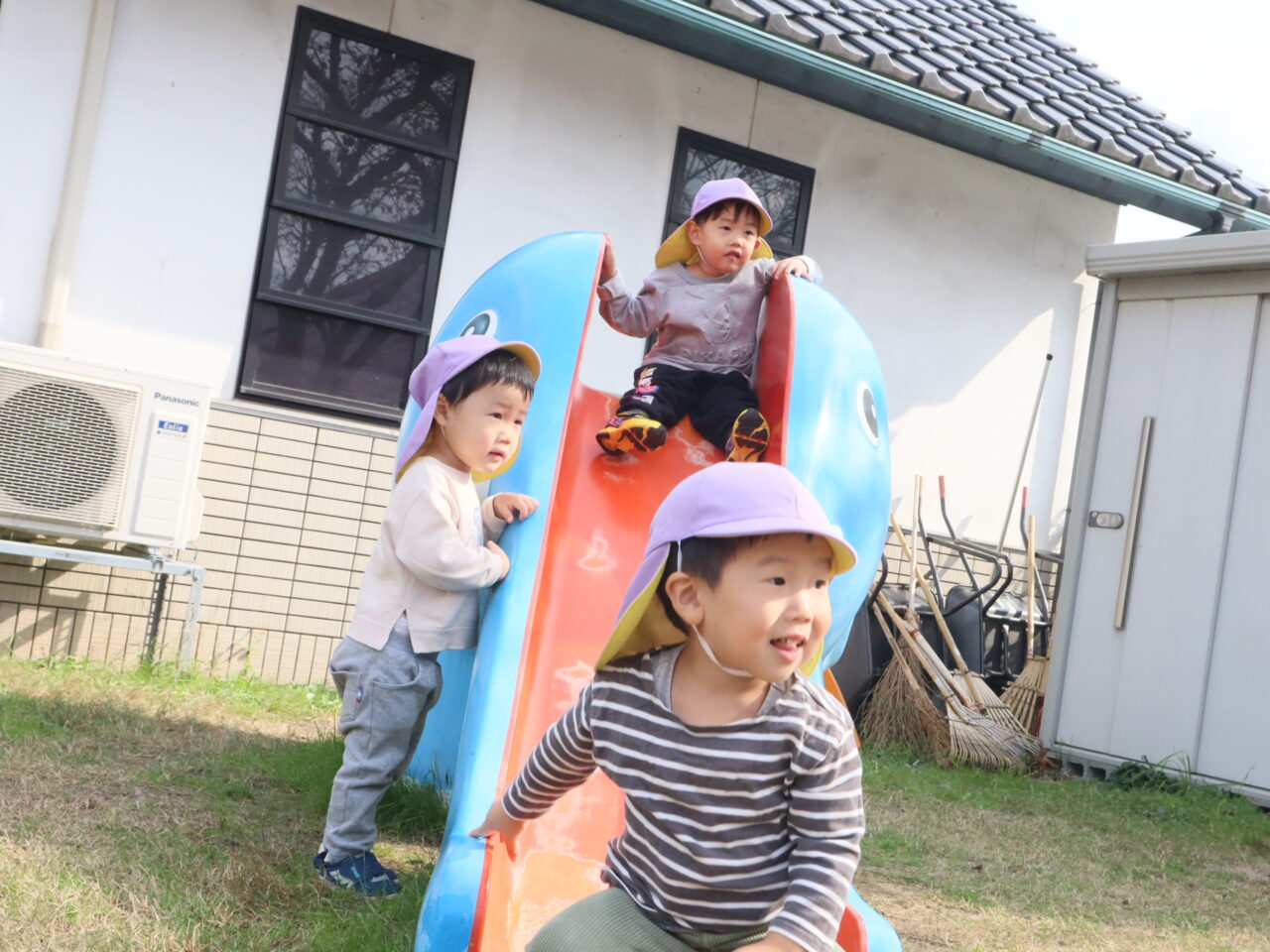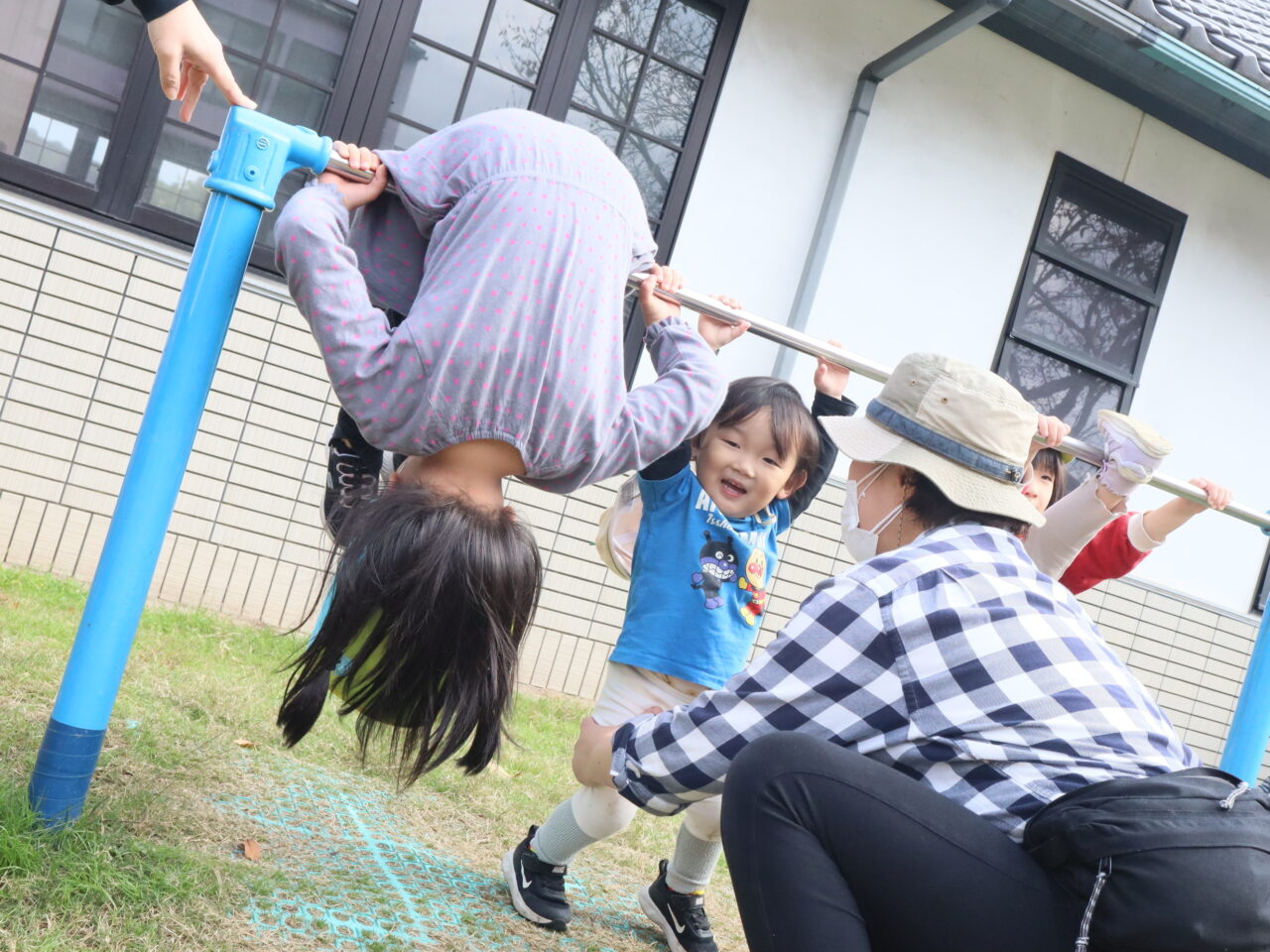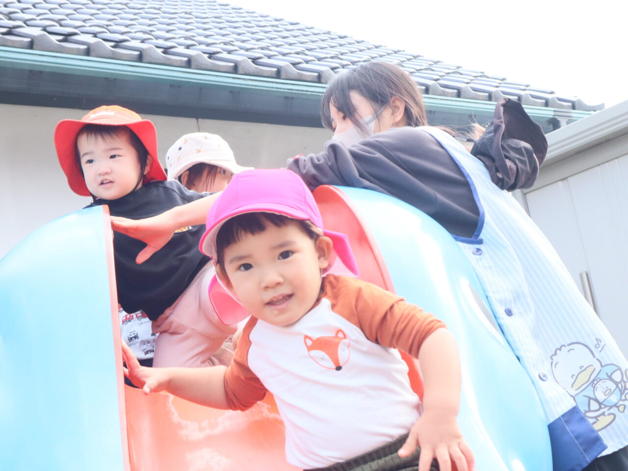 聖テレジアこども園の未満児組のお友達は、砂場でケーキ作りを楽しんだり桜の木に隠れている”カエル”を見つけたりして、元気いっぱい戸外遊びを楽しみました。