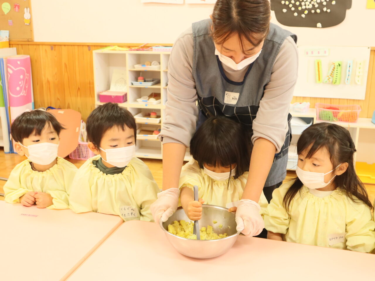 2025年11月17日 11月12日 食育クッキング 11月12日、3歳以上児クラスは、食育の日でした。 今月は、畑で収穫したさつま芋でスウィートポテトを作って食べました。 詳しい様子は 保護者専用ページ からご覧ください。