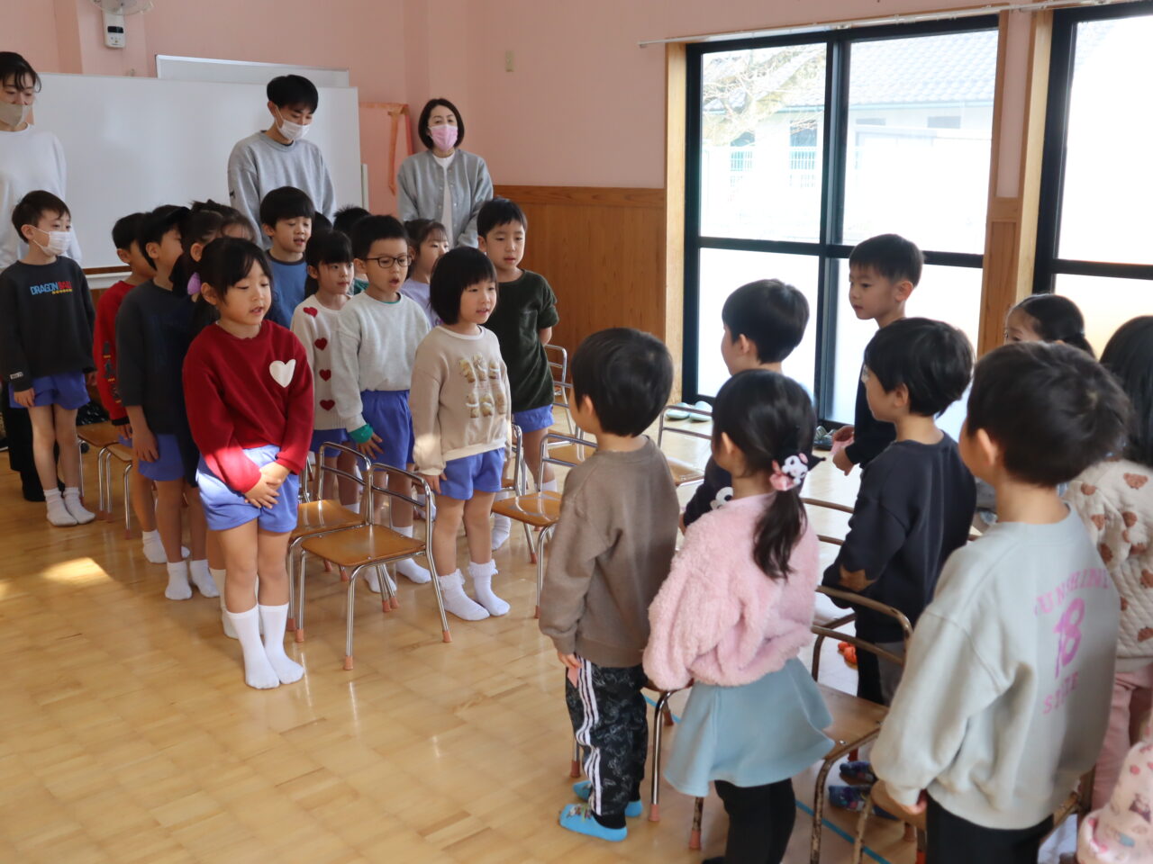 最後のお茶会では、4歳児をお招きしお茶を振る舞いました。これまで積み重ねてきた経験を生かし、相手を思いやりながら丁寧に関わる姿は、年長児としての自覚を感じさせてくれました。