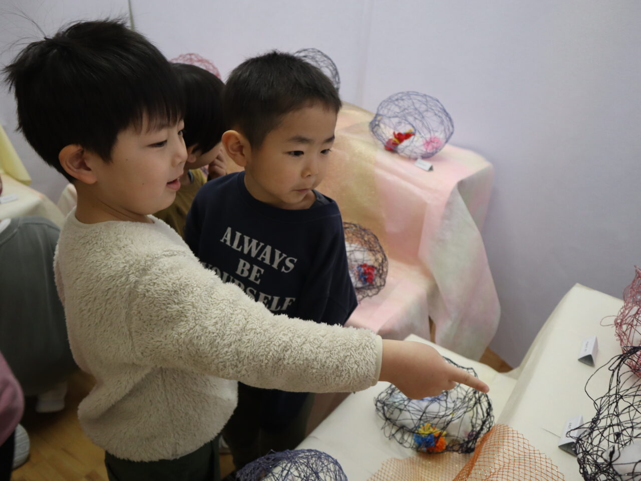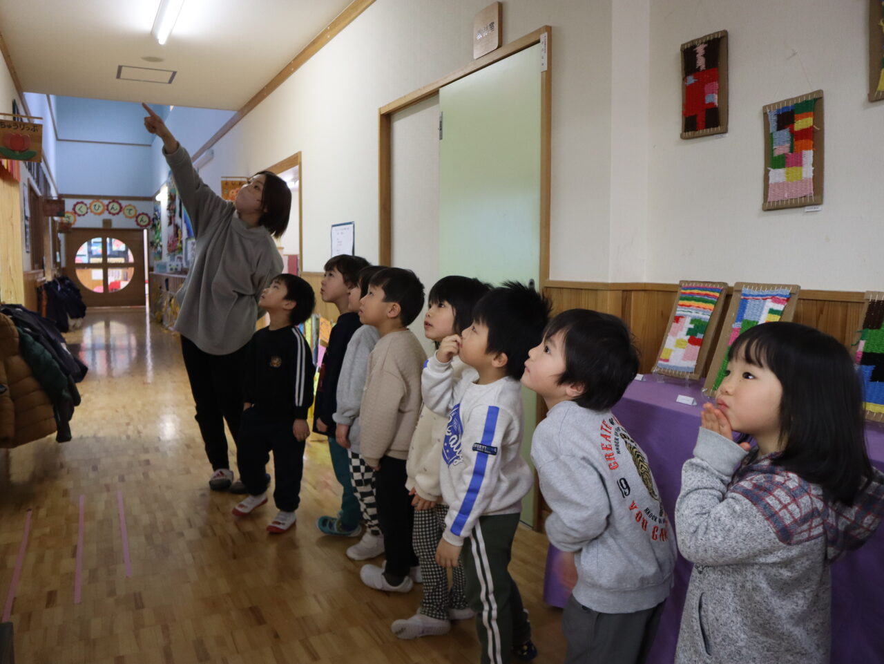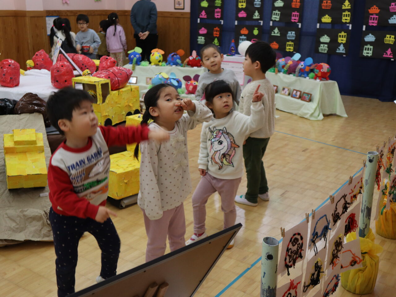 2026年02月18日 作品展見学ツアー☆ 作品展の翌日に、各クラスが担任やクラスの友だちと一緒に作品展を見て回りました。 「これ作ったよ」「すごいね」と友だち同士で伝え合いながら、楽しく鑑賞する姿が見られました。 詳しい様子は 保護者専用ページ からご覧ください。