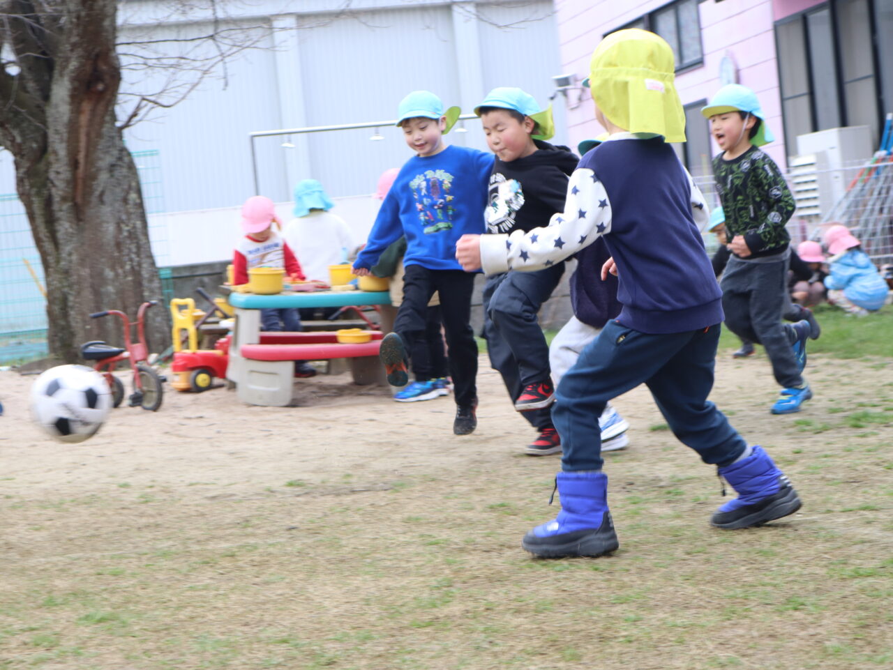 2月18日(火)、ぽかぽかとした小春日和の一日でした。 2歳以上児クラスは園庭に出て、のびのびと体を動かして遊びました。春の訪れを感じながら、笑顔いっぱいの時間を過ごしました。