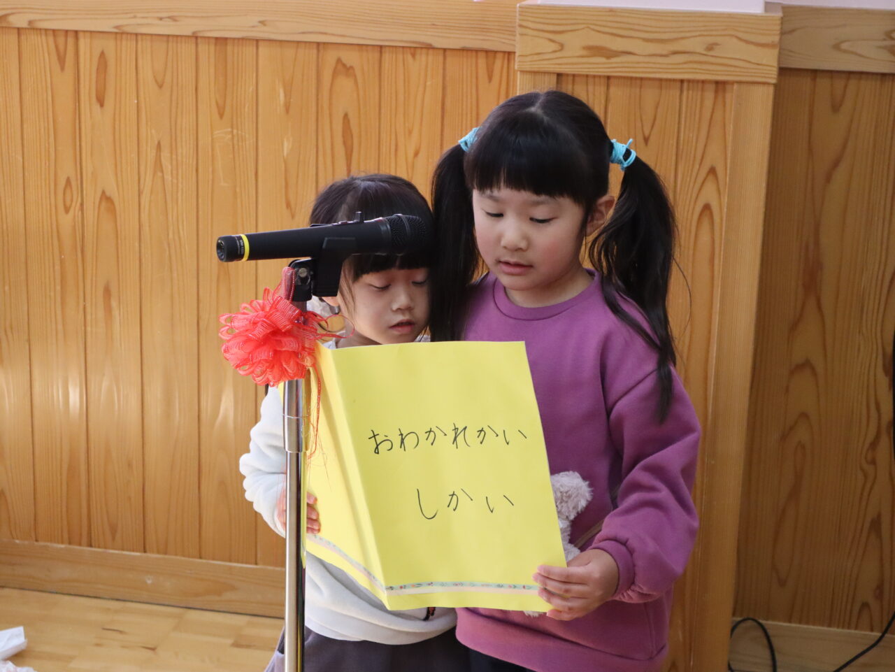 2026年03月19日 お別れ会がありました♪ 3月13日にお別れ会があり、年長児の卒園をみんなでお祝いしました。これまでたくさん遊んでくれた年長さんに『ありがとう』の気持ちを伝え、温かい時間となりました。 詳しい様子は 保護者専用ページ からご覧ください。